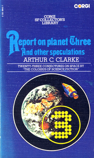 One of the most dangerous books that I have ever picked up was called Report On Planet Three And Other Speculations . I think I may have been eleven or twelve years old when I bought it from the local bookshop-cum-art-supplies-shop-cum-tourist-gift-shop that was my little provincial hometown’s sole purveyor of middlebrow culture. I think paid the princely sum of 30p for it. It was a collection of essays by science and science fiction writer Arthur C. Clarke. I can still see the cheap textured purple cover which bore the legend Corgi SF Collectors Library now, and feel (and smell) the excerably cheap paper on which it was printed.