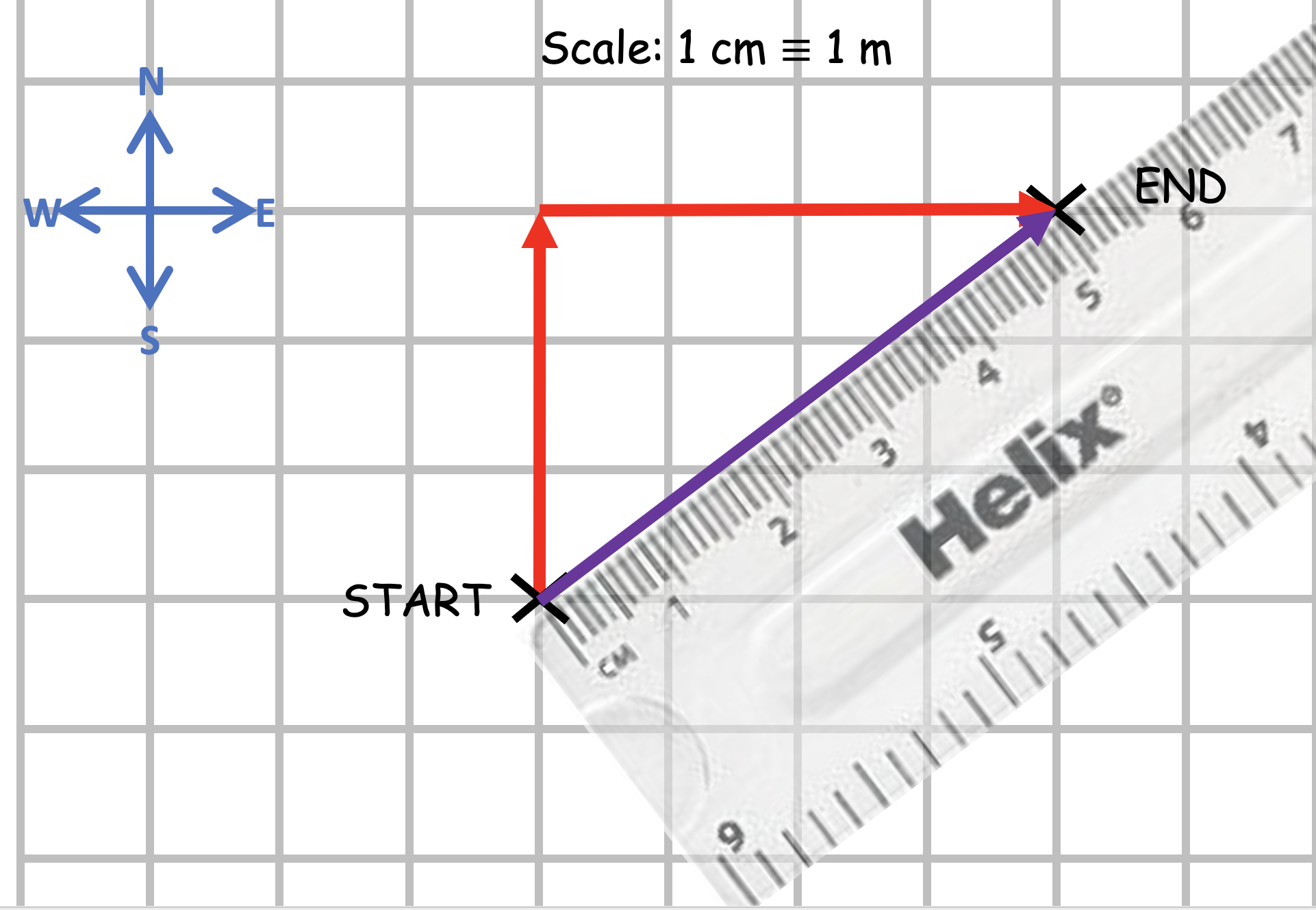 • How do we convert the length of the arrow on the scale diagram into the magnitude of the displacement in real life?