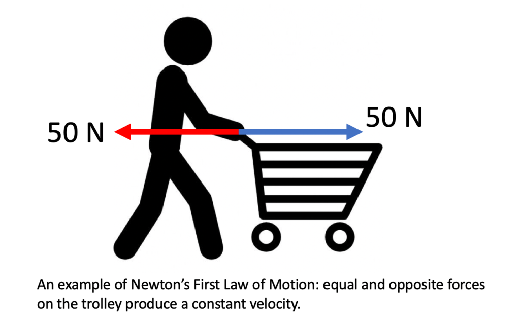 This is a bad force diagram because it is unclear which forces are acting on the cart and which are acting on the person. Apart from a very general ‘Well, 50 N minus 50 N means zero resultant force so zero acceleration’, there is not a lot of information that can be extracted from this diagram.