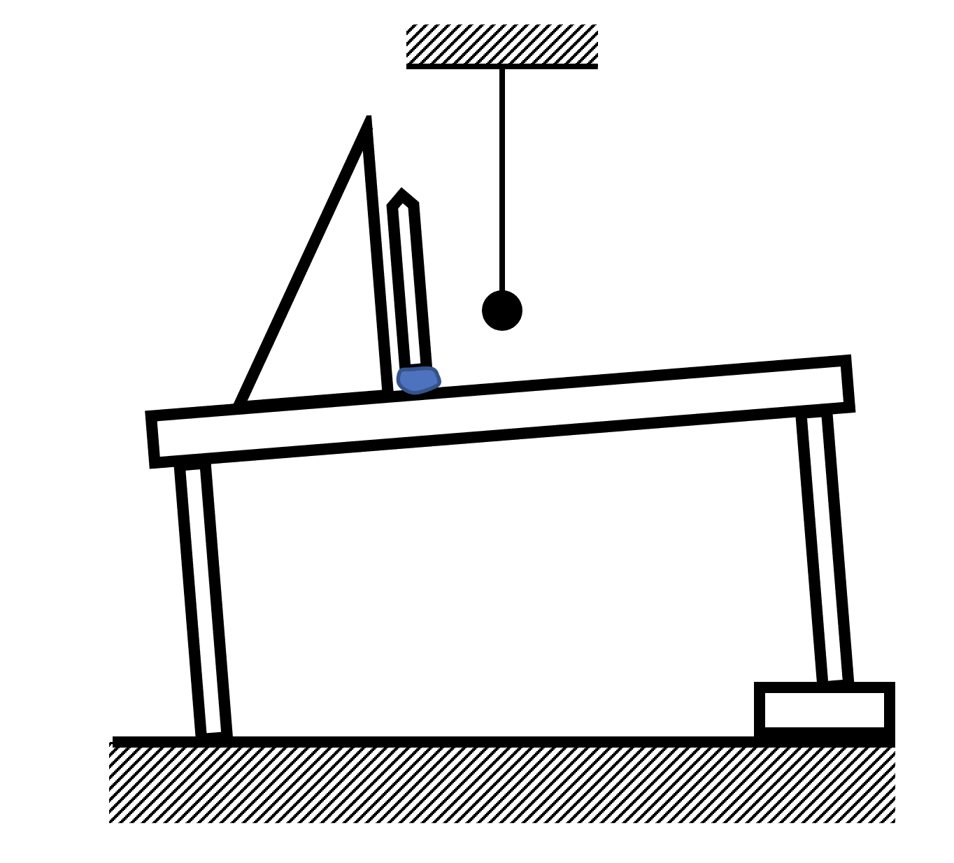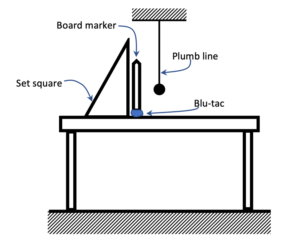 Next we tilt the table so that the local perpendicular and absolute vertical are no longer aligned. (Thanks to my colleague Bruce Pawsey for this idea.)