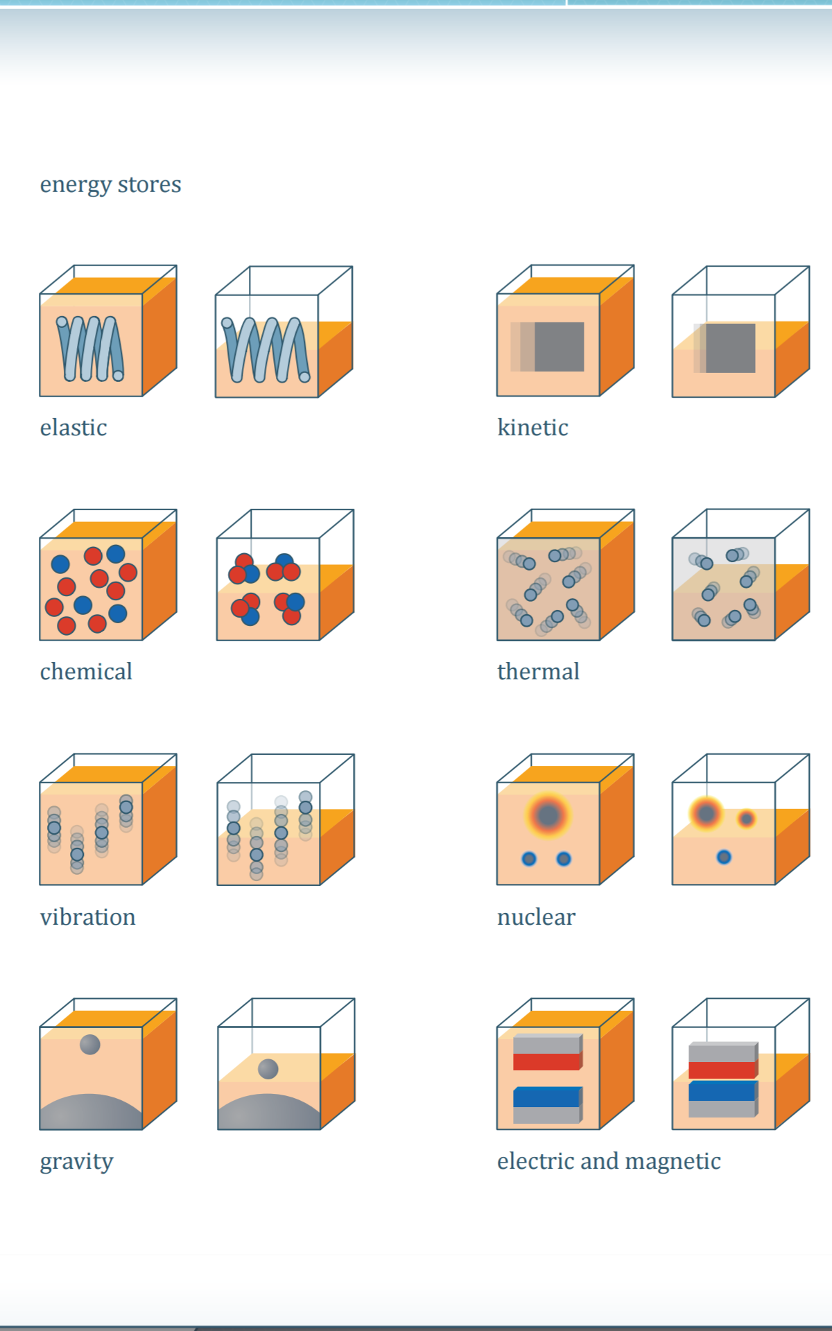 One of the suggestions made in the IOP’s Energy 11-14 is to use ideograms or icons to represent different energy stores.
